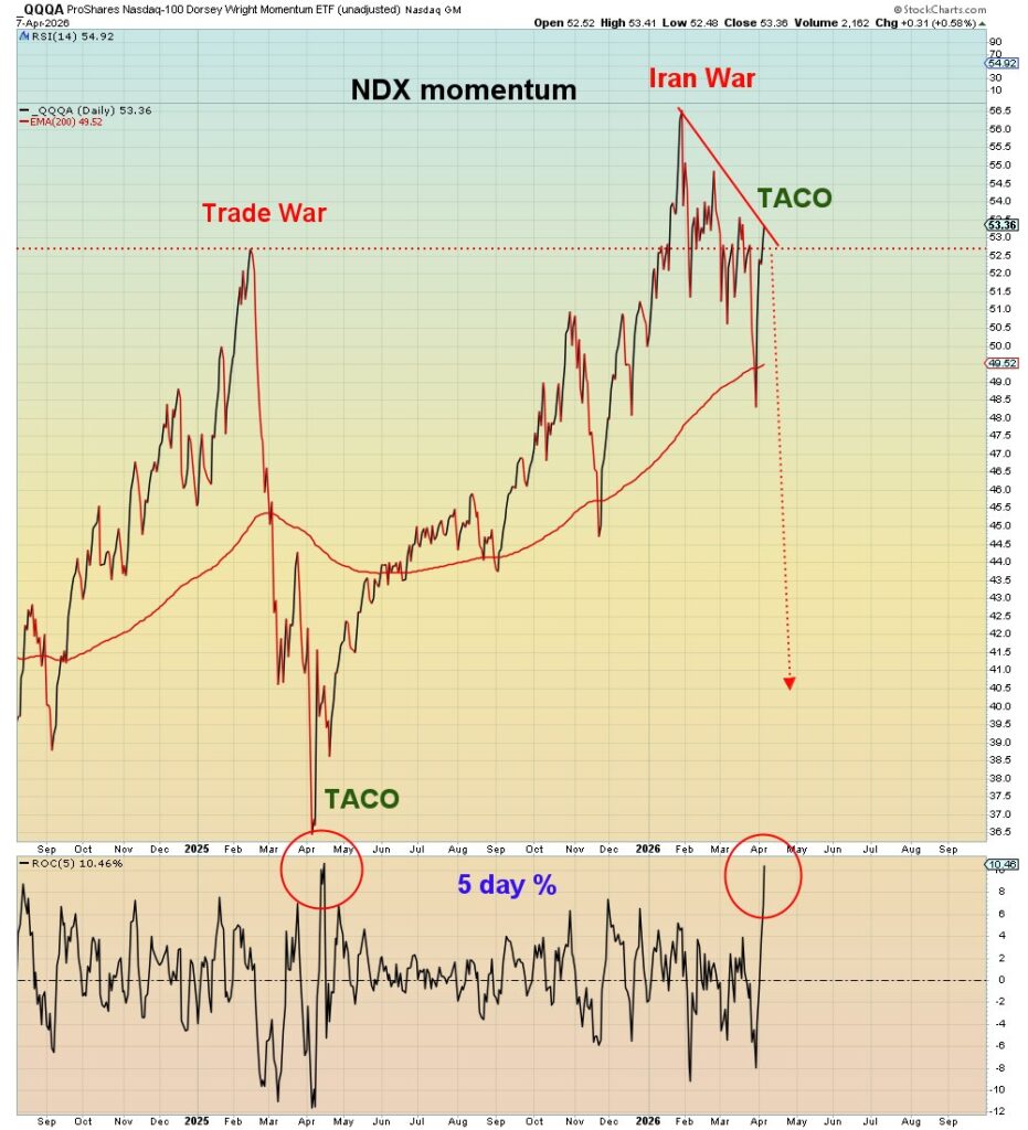 comment on ceasefire / Newsletters / By NiuNiu 今天盘后,川普在关键时刻再一次TACO !我祈祷这场战争出于人道主义原因早日结束。然而,我预测,当空头回补结束后,这波上涨行情也将结束。一年前的这周,川普做了同样的事情,他TACO了。然而,今年不会有牛市,这次TACO的上涨行情也不会持续。这与2025年截然不同,2025年得益于全球同步降息。两周后,这场战争的全球代价将体现在加息、通胀和经济崩溃上。当然,好好享受明天的Rally 👌👍